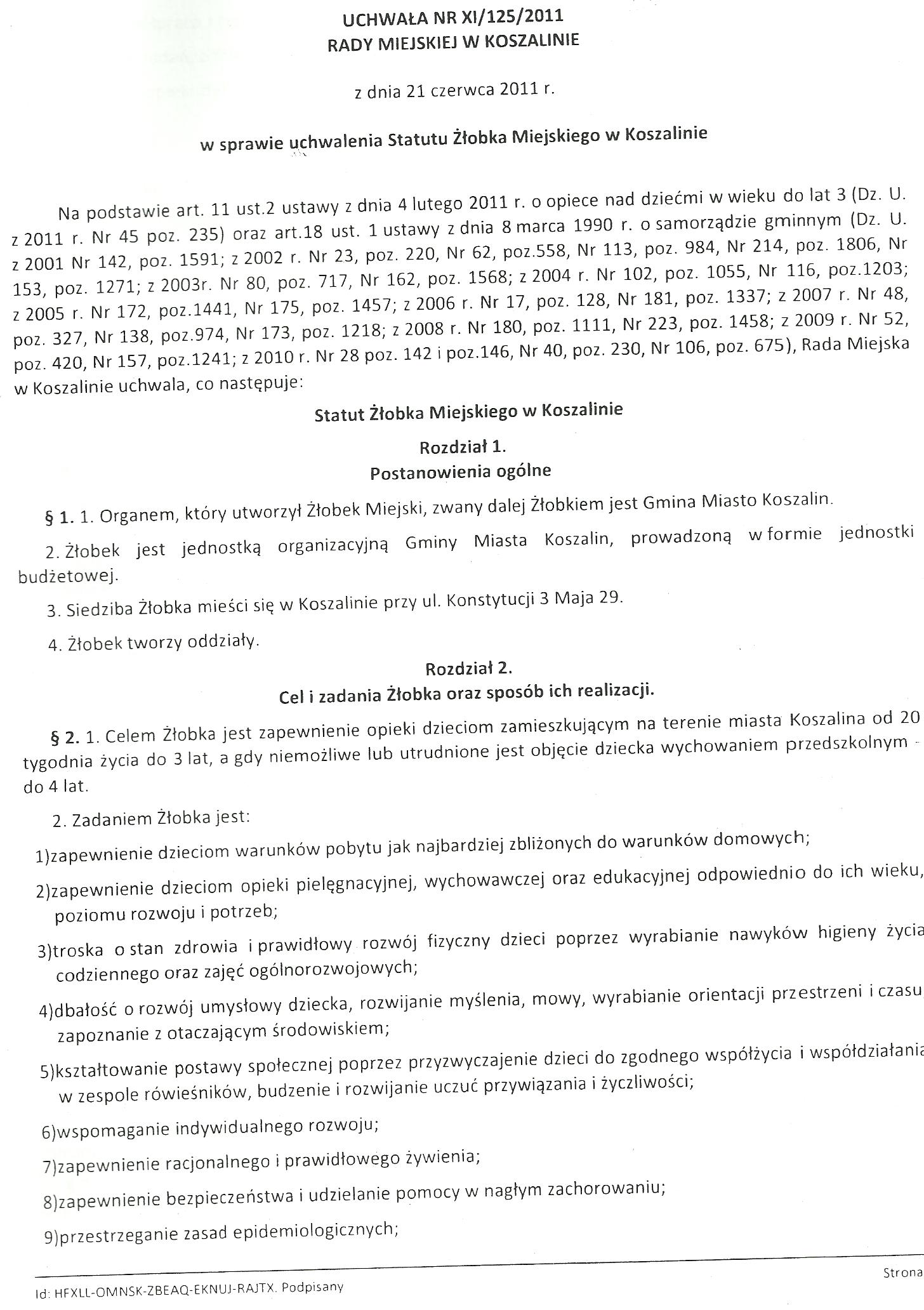 STATUT ŻŁOBKA MIEJSKIEGO z dnia 21 czerwca 2011 str 1